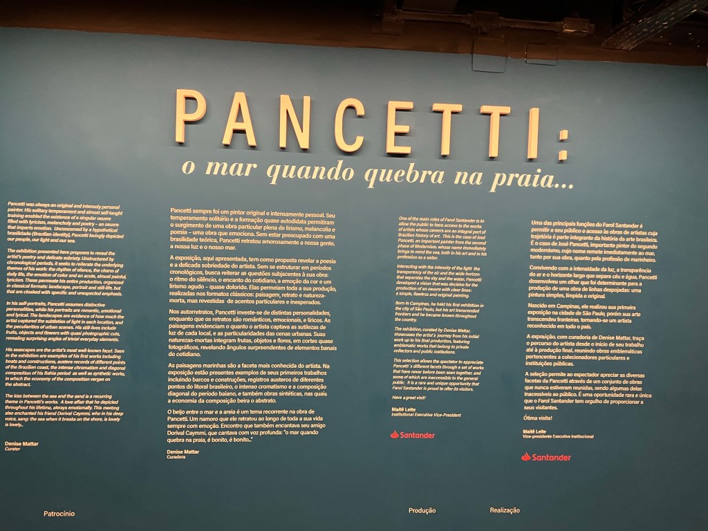 As obras do Pancetti estão disponíveis em exposição no Farol Santander. Gostaria de agradecer o convite do pessoal para conferir a abertura em primeira mão. Vale a pena prestigiar esse mega artista do modernismo. De origem simples, ele retrata o mar, os pescadores e a simplicidade da vida.